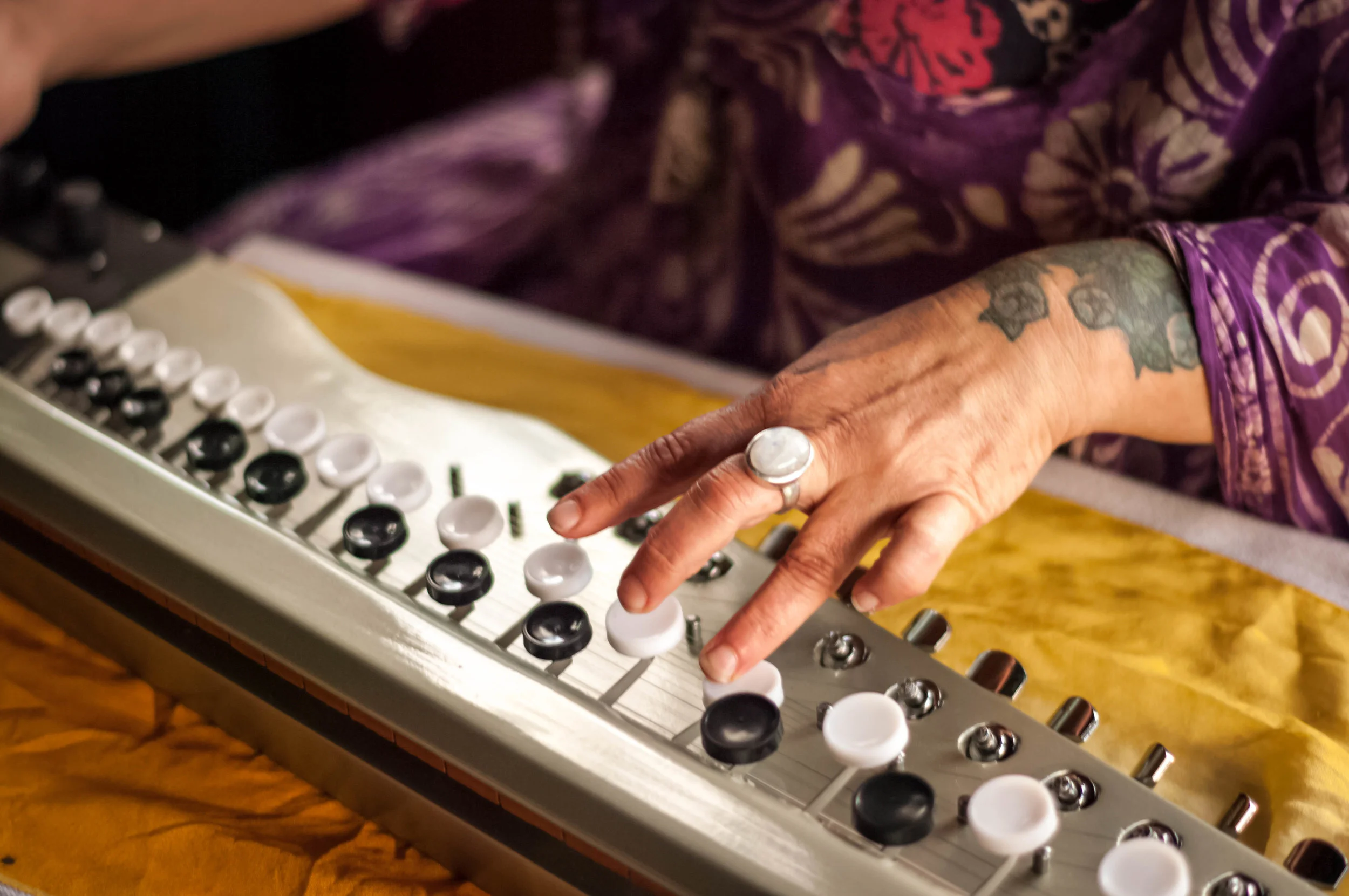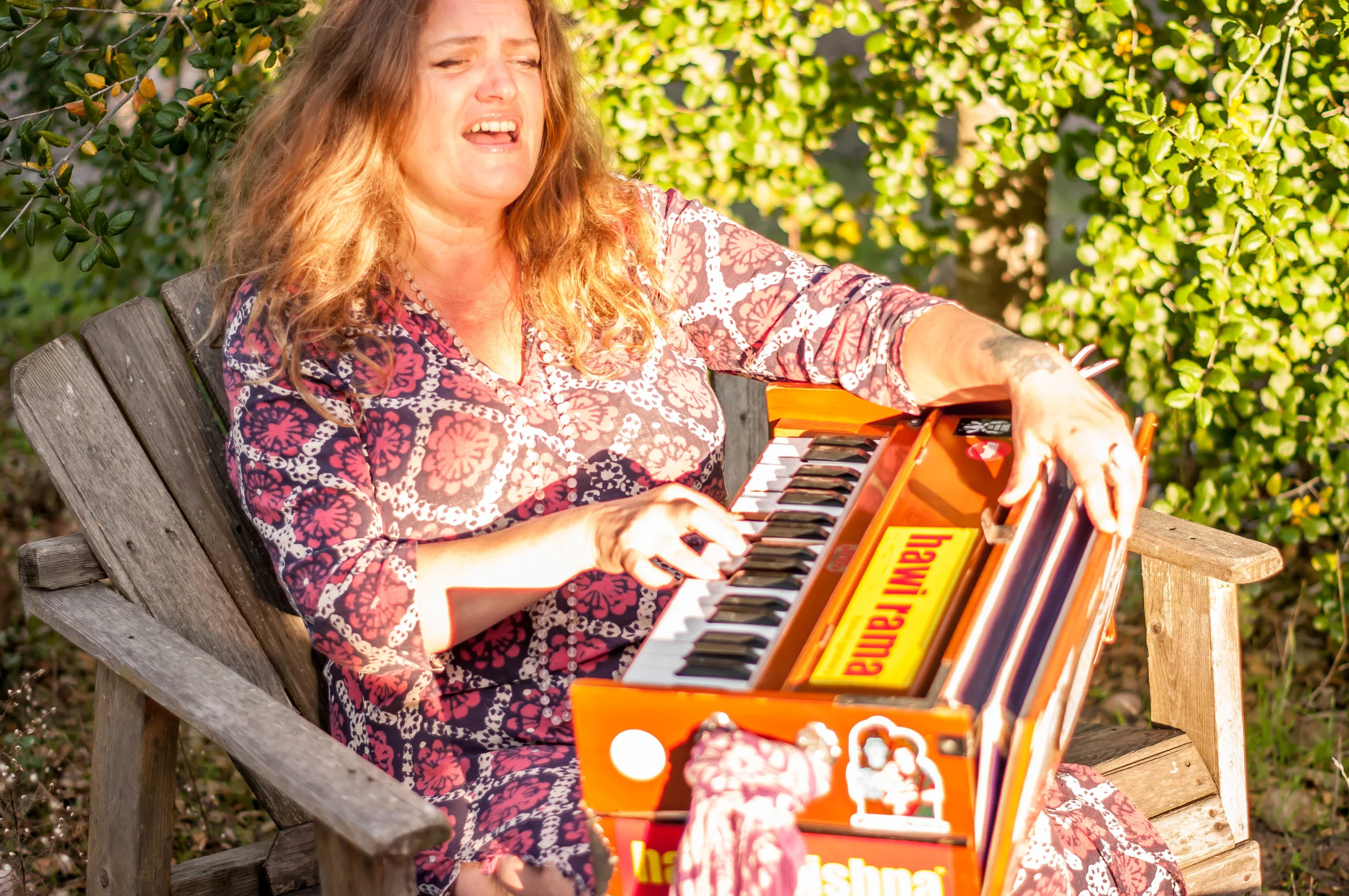 Shakti on lead vocal, harmonium, paloma + singing bowl Barry Farrar - drums + percussion